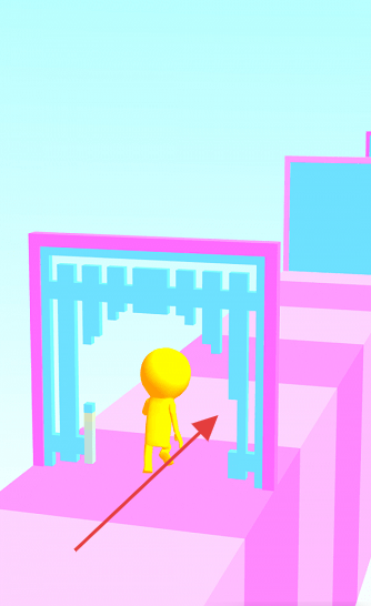 2、前进过程中,引导小人穿过不同形状的门框,可能存在通过特定形状门框可获得增益或推进游戏的设定。