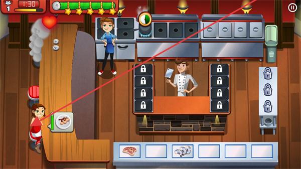 1、快节奏时间管理:每关设置“营收目标”与“顾客满意度要求”,需在有限时间内规划“备餐顺序—送餐路线—餐桌清理”,实现效率最大化,解锁“金牌店长”称号。