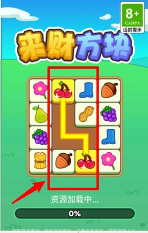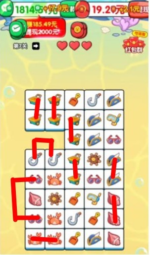 1.游戏中需要仔细观察方块排布位置,找出图案相同的两块,点击后连线即可完成消除动作。