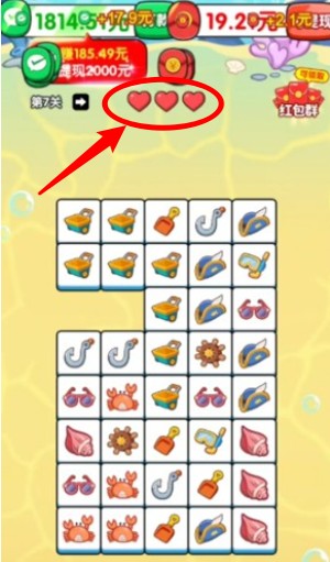 2.需要注意,若两块之间被其他方块挡住,就无法成功连线,还会扣除一格生命,必须谨慎判断。