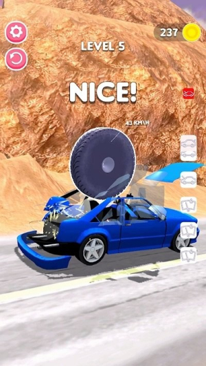 3、低门槛高上限,单指滑动即可操控轮胎,新手能快速上手;而高阶玩家需掌握角度和力度,通过精准撞击触发连锁破坏,挑战极限分数记录。