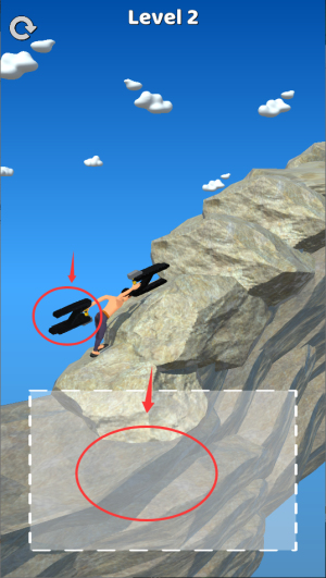1、滑动屏幕操控角色,利用登山镐交替攀爬岩壁,注意调整挥镐力度与角度,避开沿途障碍物持续向上攀登。