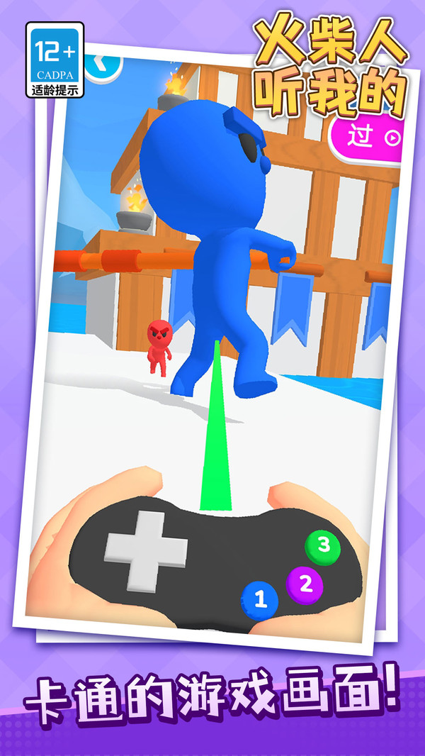 2.游戏中点击屏幕控制遥控器指挥火柴人移动。