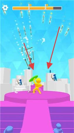 3、环境利用:部分关卡会出现障碍物或道具,合理利用这些环境元素可帮助玩家抵挡箭矢,躲在巨石后方暂时规避攻击,或拾取地上的箭矢反射器进行反击。