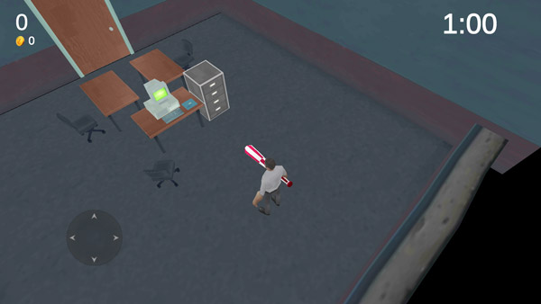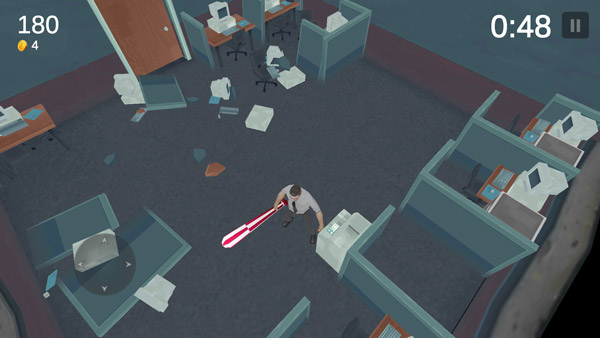 游戏的操作非常简便,玩家能够控制角色随意走动,进入不同的房间进行探索和破坏,体验释放压力的乐趣。随着游戏的发展,会遇到各种障碍,完成挑战后,游戏会根据你的表现评分,并提供金币作为奖励。这些金币可以用来购买各种武器和服装。每种武器在攻击力和攻击速度等方面都有所区别,选择一把适合自己的武器,尽情地破坏吧,把整个办公室都砸烂!