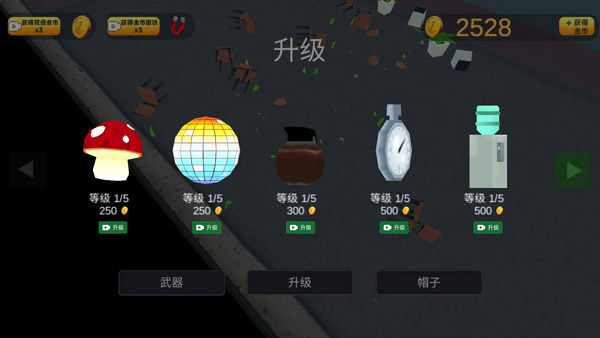 在升级页面,玩家可以看到各种道具,并可自由选择升级它们,以增加关卡挑战的更多优势!
