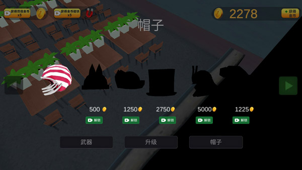 点击帽子图标,你可以看到各种不同的帽子装饰。完成选择后,点击右边的绿色按钮即可开始。