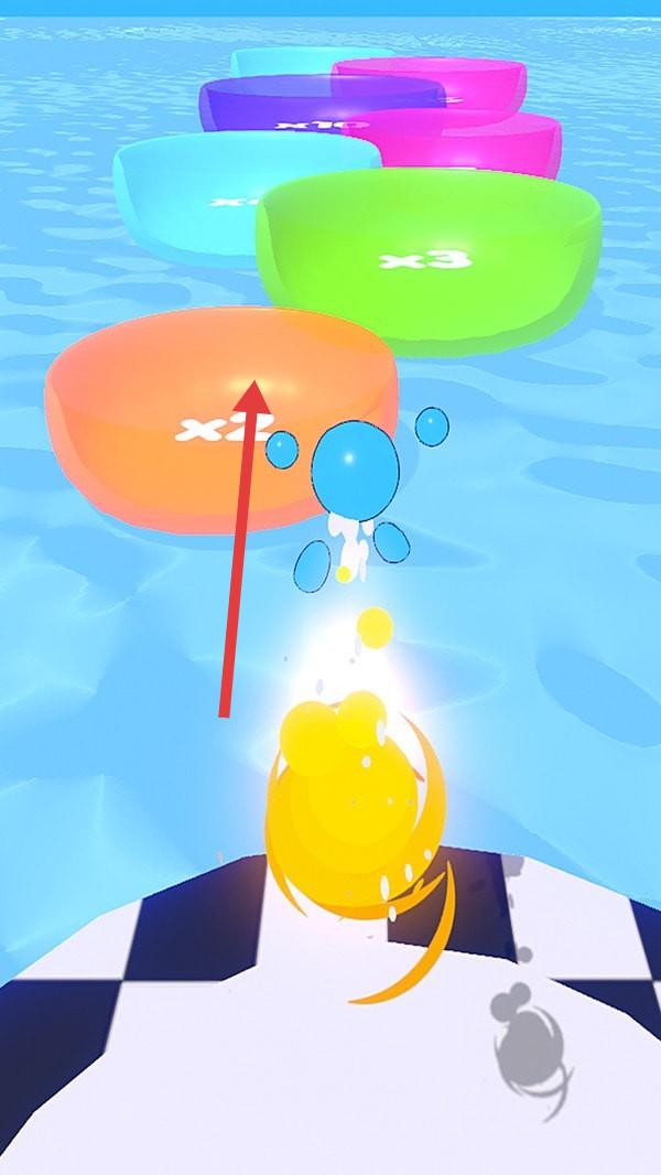 1、在游戏过程里,操控蓝色角色前进,先跳到标有“x2”等倍数的平台,增加得分倍数。