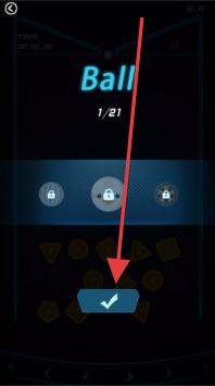 2、进入关卡选择界面,如“Ball1/21”,点击对应关卡的对勾按钮开启关卡。