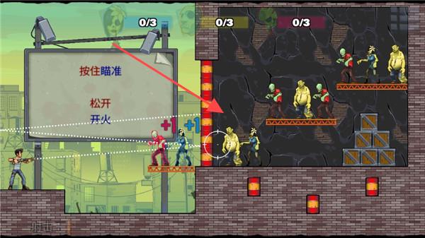 愚蠢的僵尸3是卡通风格僵尸射击,欧美萌系画风搭配极简滑动操控,通过规划子弹轨迹穿透僵尸得分,轻松解压又具策略性,玩法也十分简单,上手极其轻松,玩家只需要用手指在屏幕中来回滑动控制子弹的发射轨迹,然后发射即可。