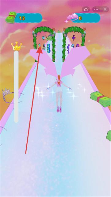 2、在游戏关卡中,操控角色在跑道上前进,收集道路上的金钱和皇冠等道具,同时注意避开障碍物。