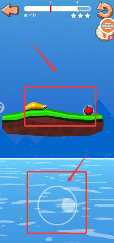 2、通过手指滑动控制软体生物移动,引导它穿越障碍物,成功获取场景中的新鲜果实。