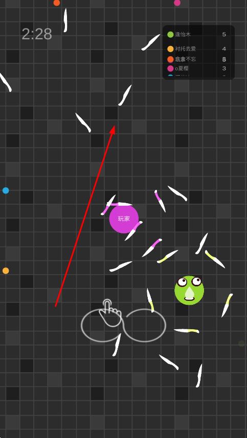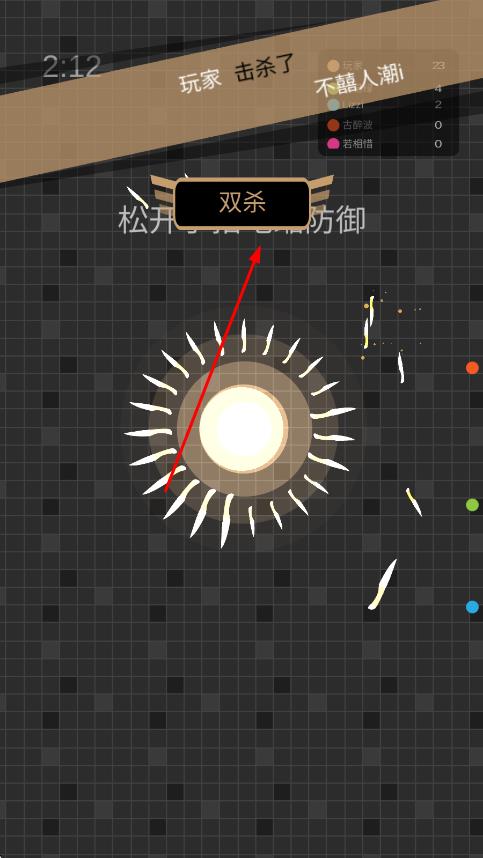 1、进入对战场景后操控角色移动收集散落飞刀,前期优先避开高数量敌人,通过绕障碍物或拾取加速道具快速发育,积累10把以上飞刀再尝试进攻。
