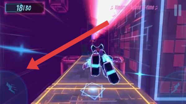1、进入游玩关卡,按箭头指示,沿轨道向前奔跑,跟随节奏躲避障碍,收集道具。