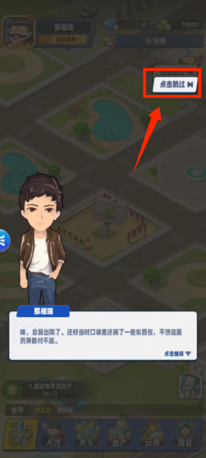 1、下载安装好游戏后打开,点击右上角可以跳过新手剧情。