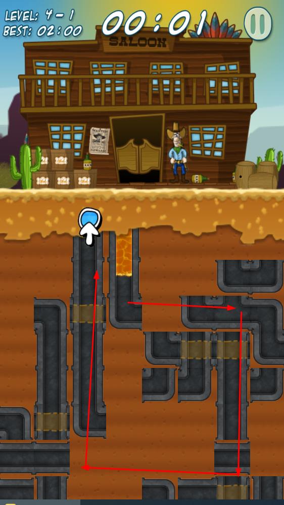 1、管道连接操作:根据提供的断开管道,通过点击调整方向,将管道依次连接贯通,引导水流前行。