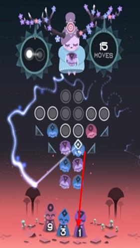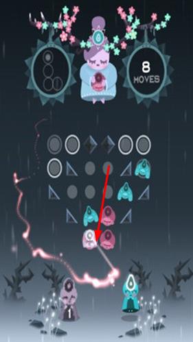1、玩家进入游戏后,首先看到上方角色ruya释出形状,需与中间区域同色形状抵消,开启首关消除解谜之旅。