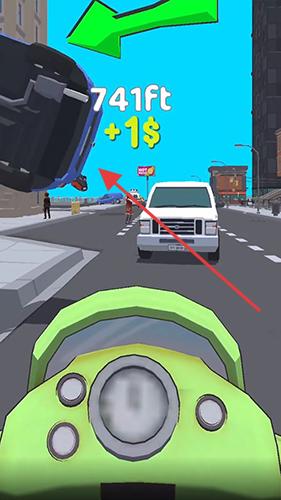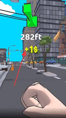 1、游戏开始后,操控角色沿着街道前进,注意上方显示的距离数值(如【282ft】),收集金钱并保持前进。
