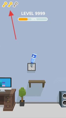 1、精准控制翻转跳跃:通过点击屏幕控制瓶子翻转跳跃,瞄准目标平台,计算好跳跃力度与角度,让瓶子准确降落到物体上,避免因力度不足或过度导致掉落。