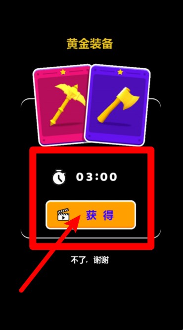 2.通过观看广告可获得限时黄金装备三分钟强化,包含黄金镐与黄金斧,提升伐木速度大幅加快资源获取效率。