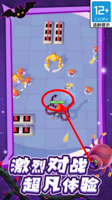 2.角色头顶绿色数值代表当前生命值,需注意躲避伤害弹幕,保持血量,才能持续应战多个敌人围攻。