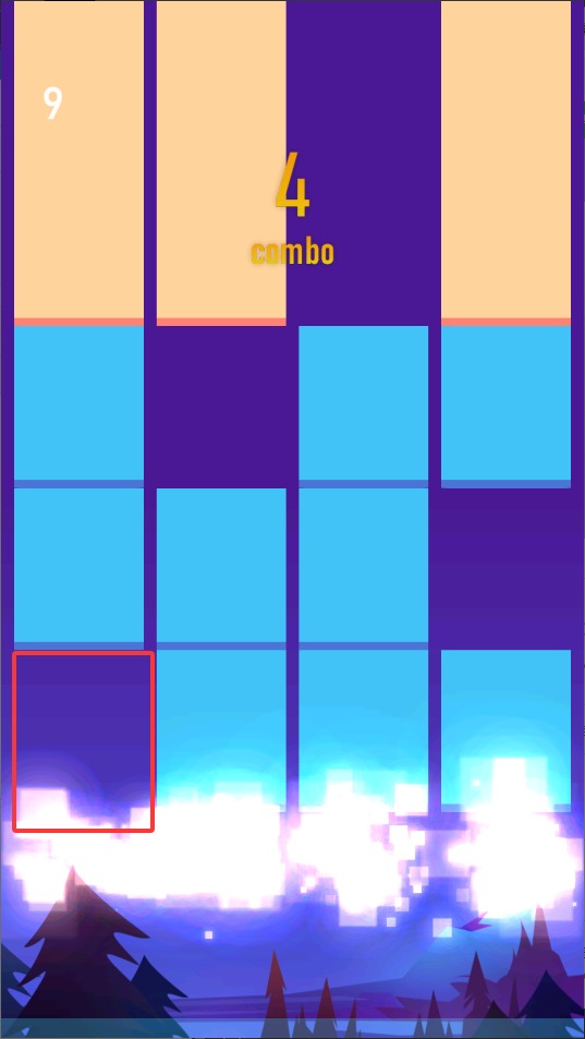 2、当蓝色琴键下落时,只需快速轻点一次即可将其击碎,注意把握点击的精准时机。