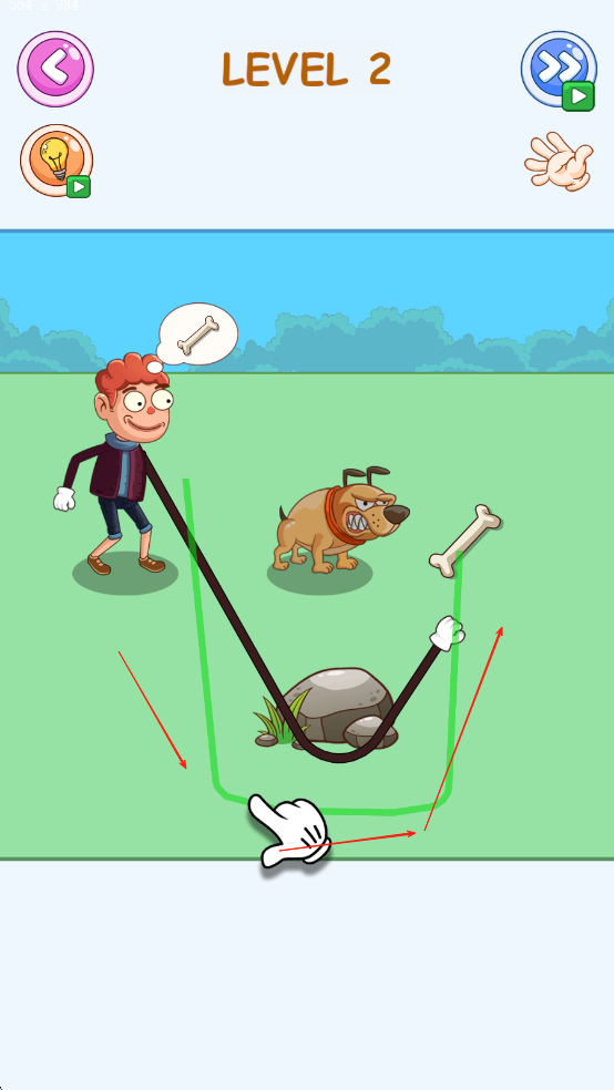 1、进入关卡后观察场景布局,滑动屏幕控制小偷手臂伸长方向,避开巡逻的人物、动物及激光等陷阱,向目标物品位置移动。