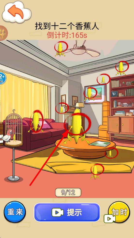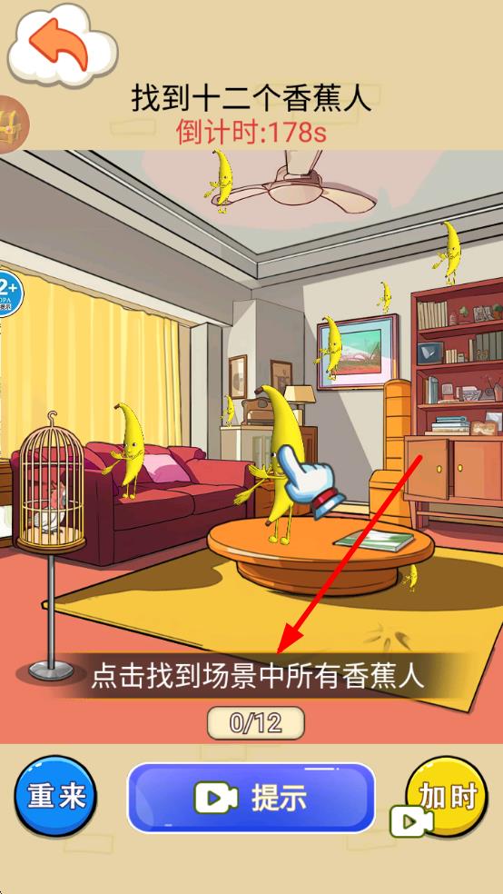 1、细致观察法:找物关卡放大场景,逐区域排查(如家具缝隙、装饰画后),留意“违和感”元素(香蕉人混在物品中)。