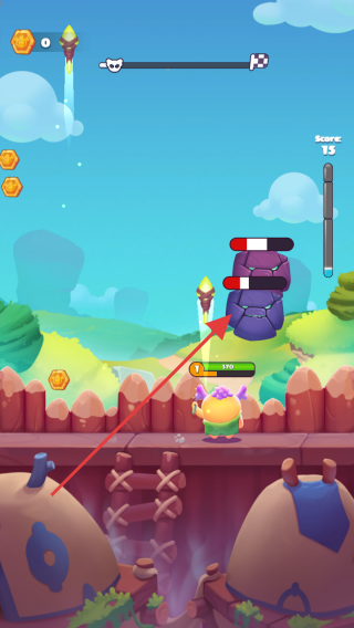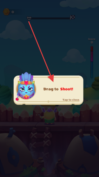 1、进入游戏,按提示【Drag to Shoot!】拖动角色,调整射击角度与力度,发射攻击,击打敌人。