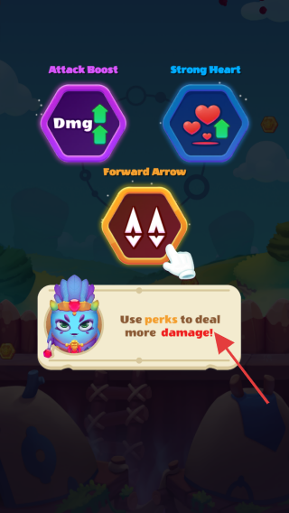3、解锁“perks”(增益)后,选【Forward Arrow】等技能,点击激活,提升伤害,助力战斗,推进关卡。