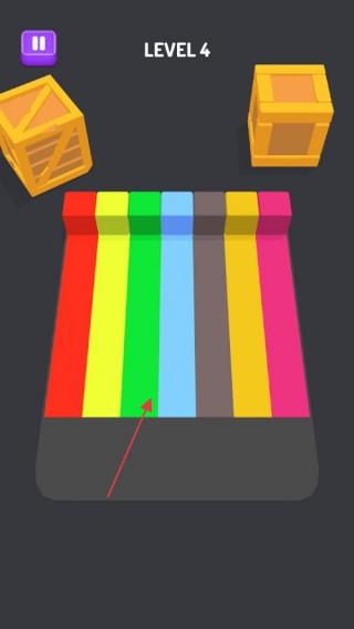2、关卡玩法进入LEVEL4、5等关卡,需折叠彩色长条、方块,按箭头指引移动拼接,组合成目标形状,考验空间思维。