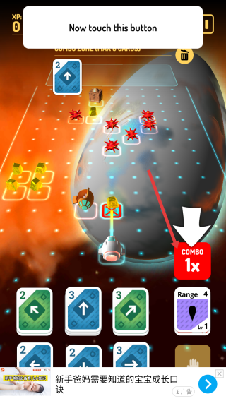 3、再触摸“COMBO1x”按钮,熟悉连击机制(如伤害加成),推进教学关卡进度。