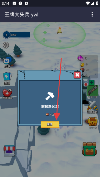 3、遇到“解锁新区域”提示,确认消耗1.0资源后,点击【建造】按钮,开拓新地图板块,解锁更多玩法。