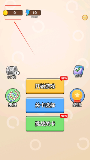 2、在主界面选择开始游戏进入关卡挑战,注意左上角体力值消耗,通过消除圆环完成关卡目标获取金币奖励。