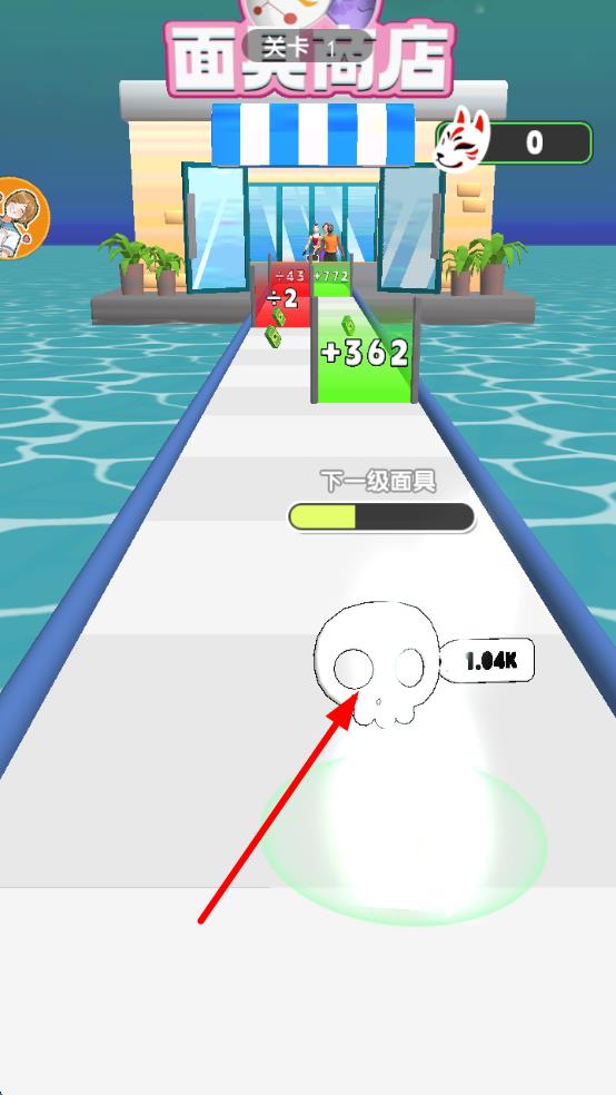 1、点击“点击开始”,操控面具在跑道起跑,通过左右滑动等操作,引导面具穿越不同道具门。