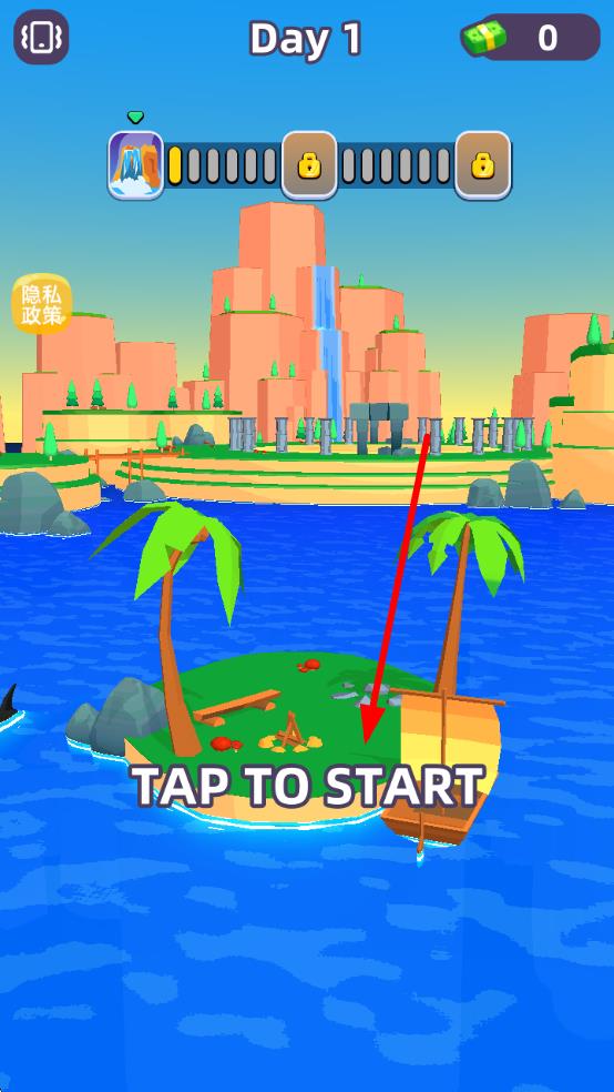 1、进入游戏点击“TAP TO START”,乘坐小船开启冒险,在宠物世界场景中探索,寻找各类怪兽踪迹。