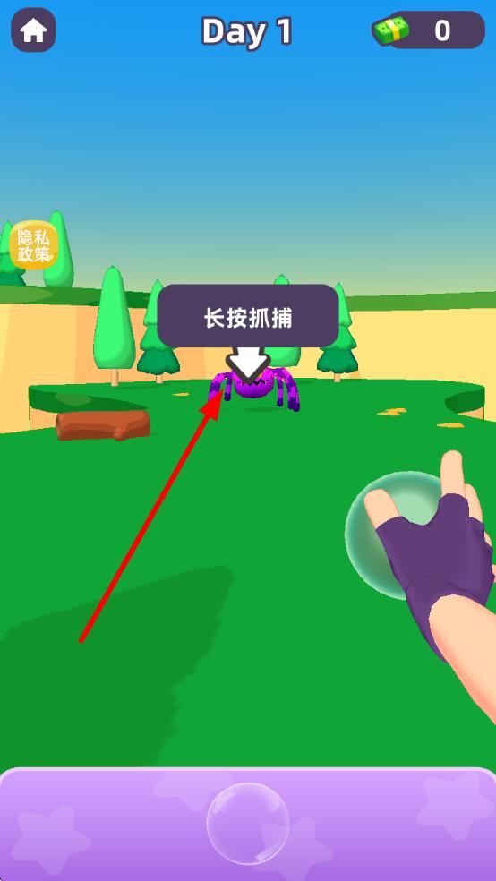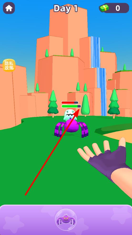 2、遇到目标怪兽(如紫色蜘蛛怪 ),根据提示长按屏幕进行抓捕,持续操作直至成功收服。