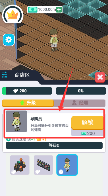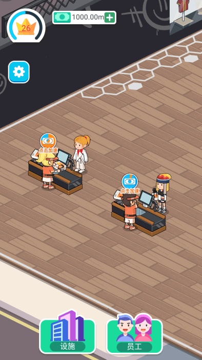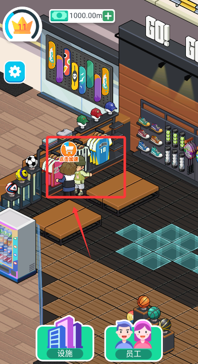 1、启动游戏后,通过点击屏幕升级设施,优化陈列布局来提升每日营业额收益。
