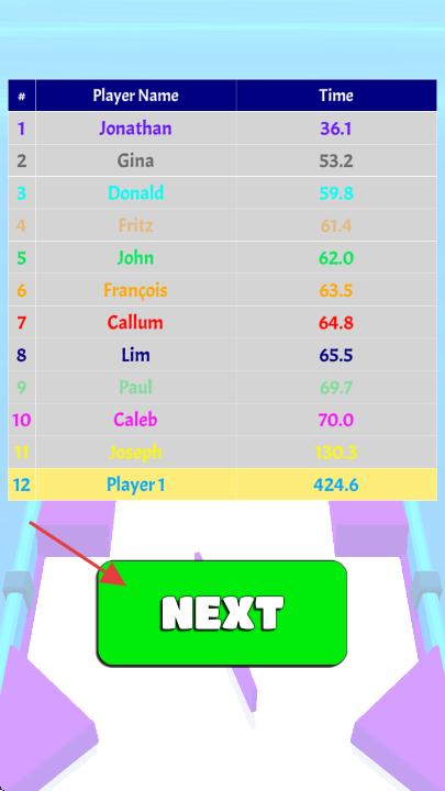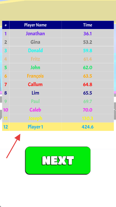 2、游戏结束后查看排行榜,了解自己的排名和时间成绩。