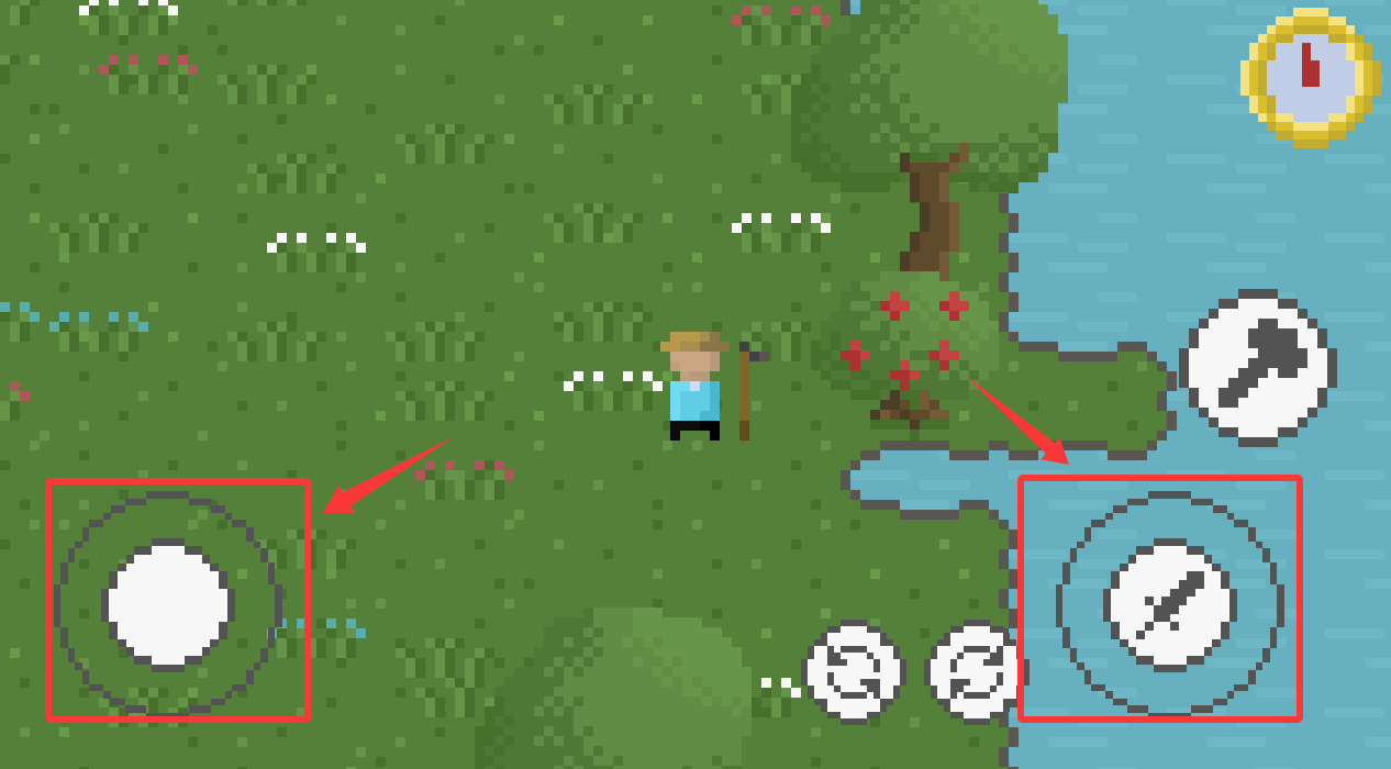 3、左边虚拟键是上下左右移动,右边虚拟键是攻击。