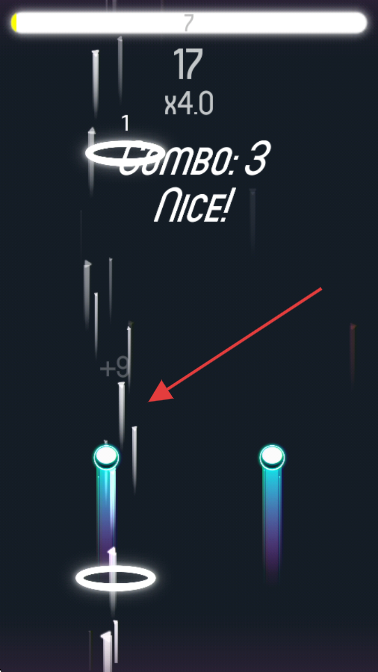 2、游戏过程中,操控光环躲避箭头指向的下落障碍,保持连击以提升得分。