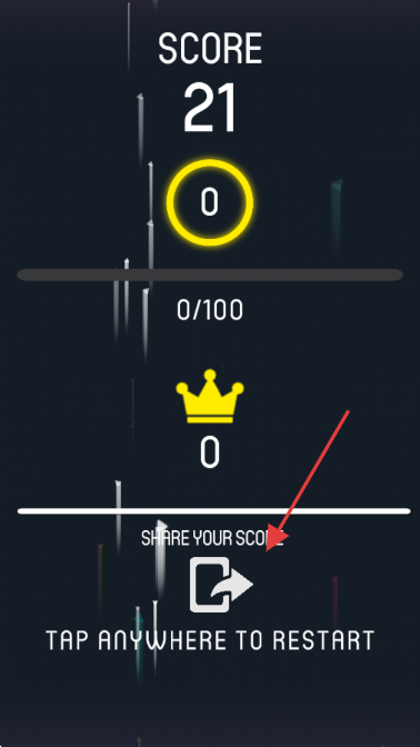 3、结算界面可点击【SHARE YOUR SCORE】分享分数,也可点击任意位置重启游戏。