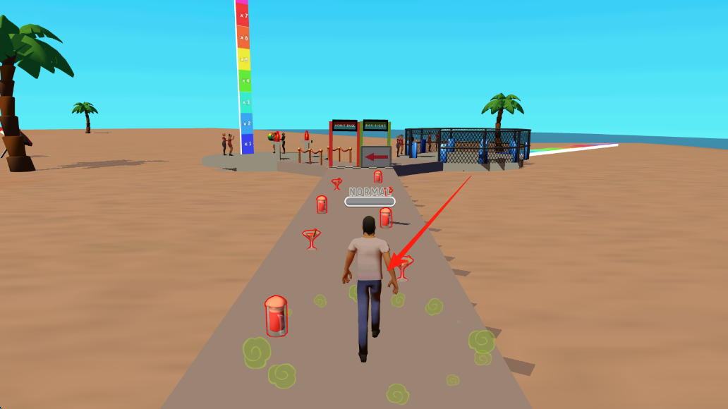 1、搞笑醉酒动态设计:角色因醉酒呈现左右摇晃的行进姿态,碰撞障碍物时触发夸张摔倒动画,收集酒杯会加剧醉酒状态,导致移动轨迹更难预测,增加趣味性。