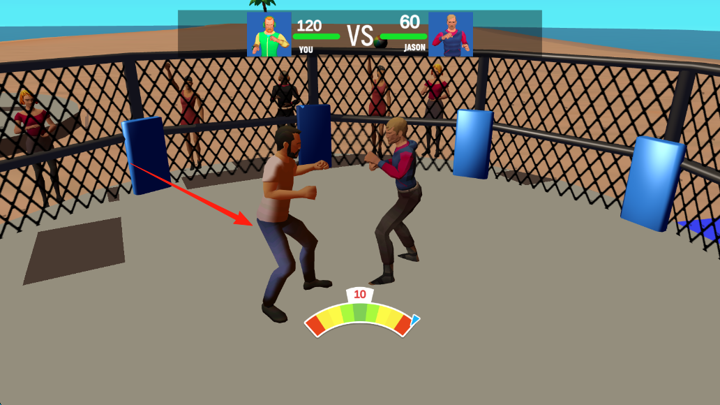 2、进入格斗环节,把握时机,用拳攻击对手,根据能量条调整出招节奏。