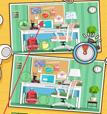 1、在找不同关卡,对比上下两张办公场景图,点击差异处(如物品位置、样式变化)完成挑战。