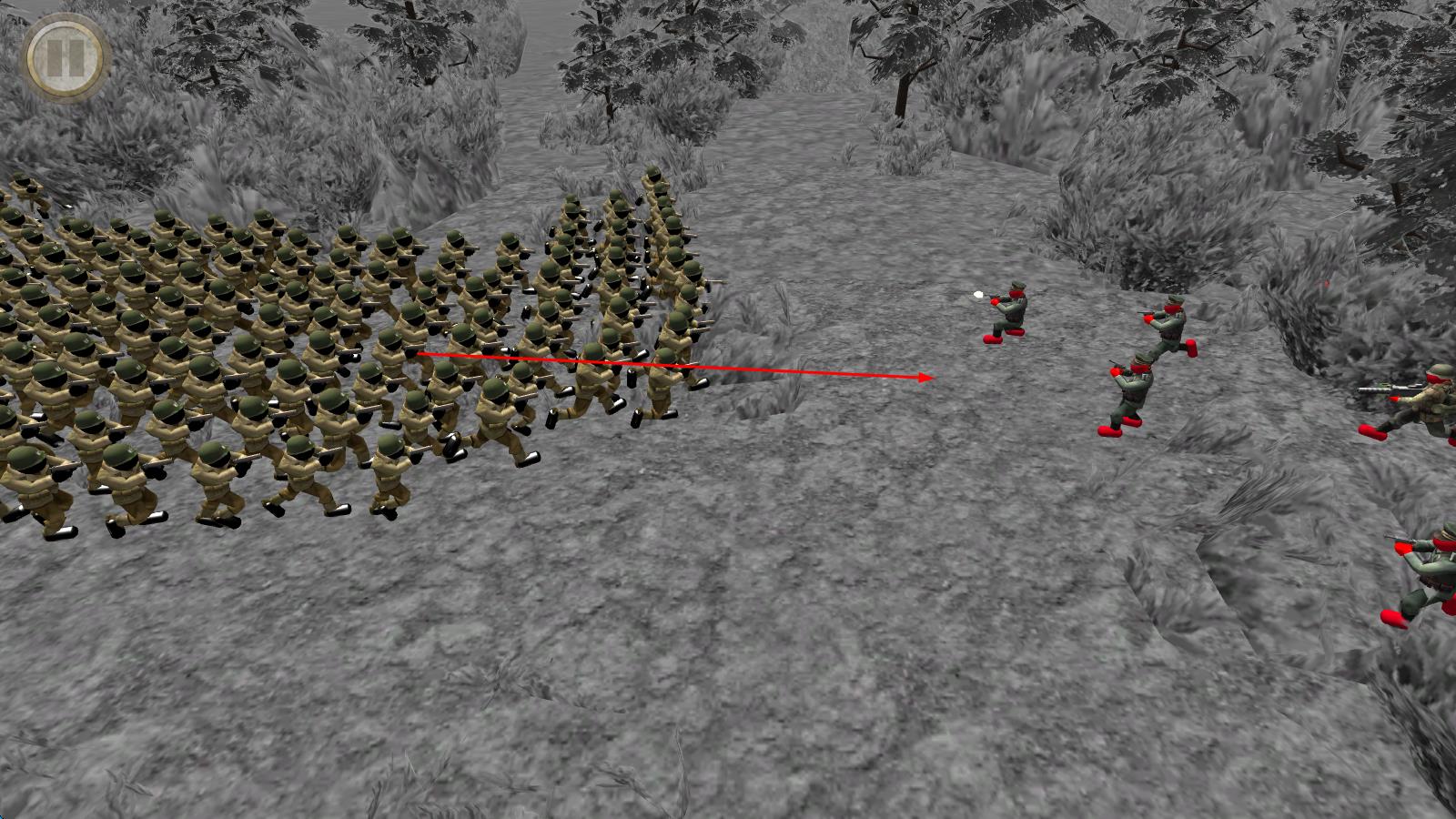 2、游戏中途,在地图上精准布置所选部队的站位,调整兵种数量与排列方式,点击“go”触发战斗,观看双方军队模拟对战过程。