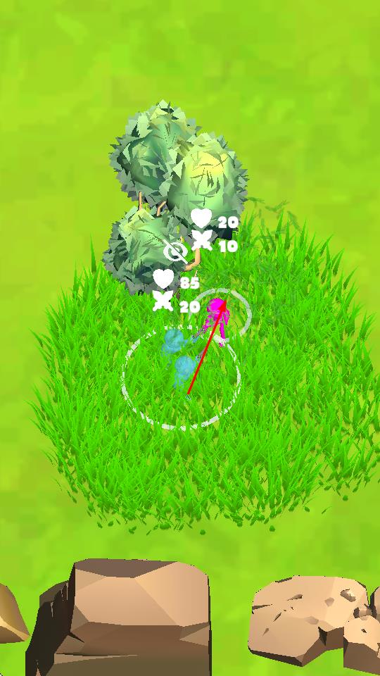 1、明确的阵营划分:只有白色小人可被玩家收集并纳入队伍,其他颜色的小人则为敌对势力,这一设定简化了战斗逻辑。