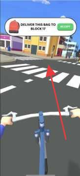 1、接取【DELIVER THIS BAG TO BLOCK 17】任务,骑行时留意道路,沿箭头方向,避车辆行人,往目标街区赶。