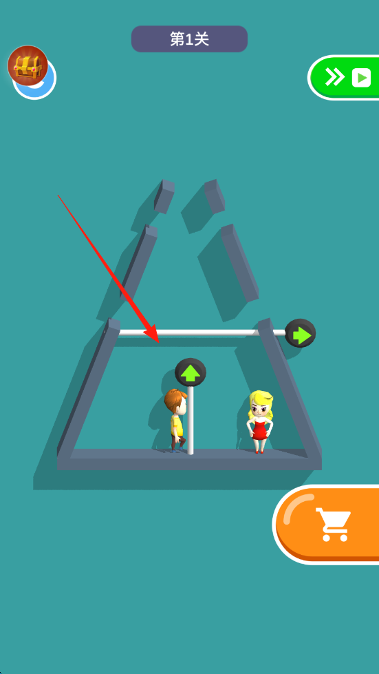 1、观察关卡内人物与机关,点击滑动移除横杆,让人物借助机关移动靠近。