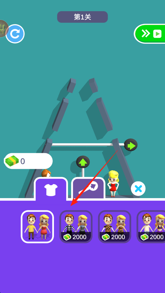 2、下方选择不同人物形象,花费金币解锁,替换当前角色,尝试通关。